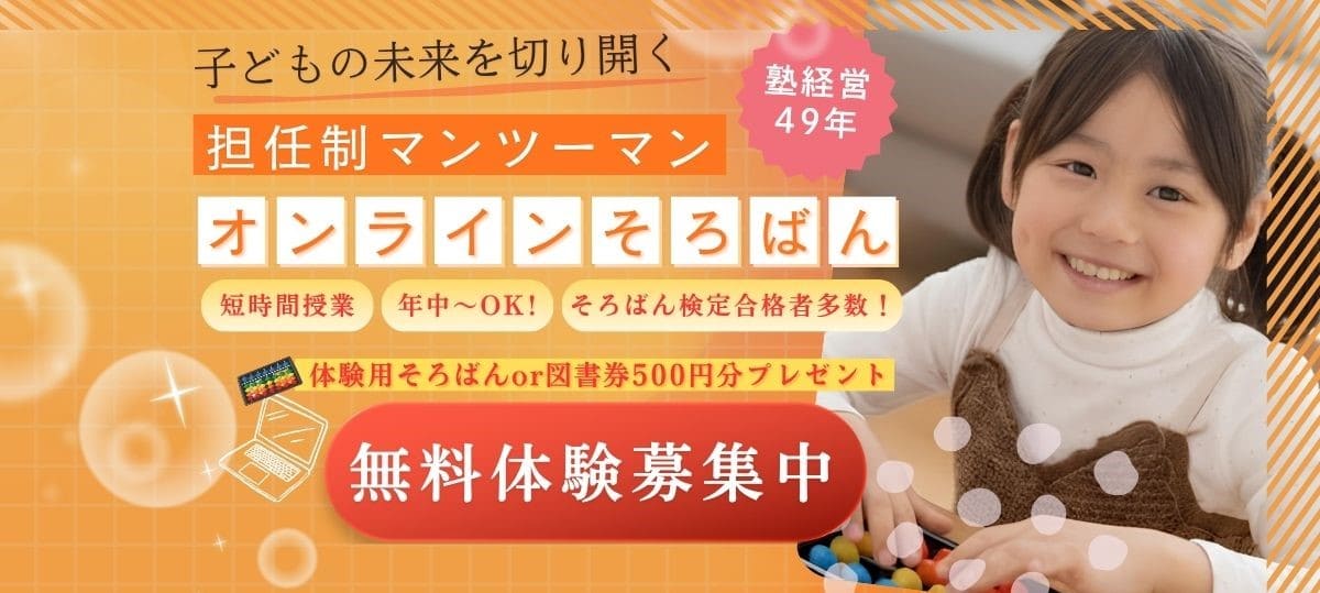 ネットdeそろばんは、塾経営48年の経営メソッド詰め込んだそろばん授業をオンライン個別指導で行っています。